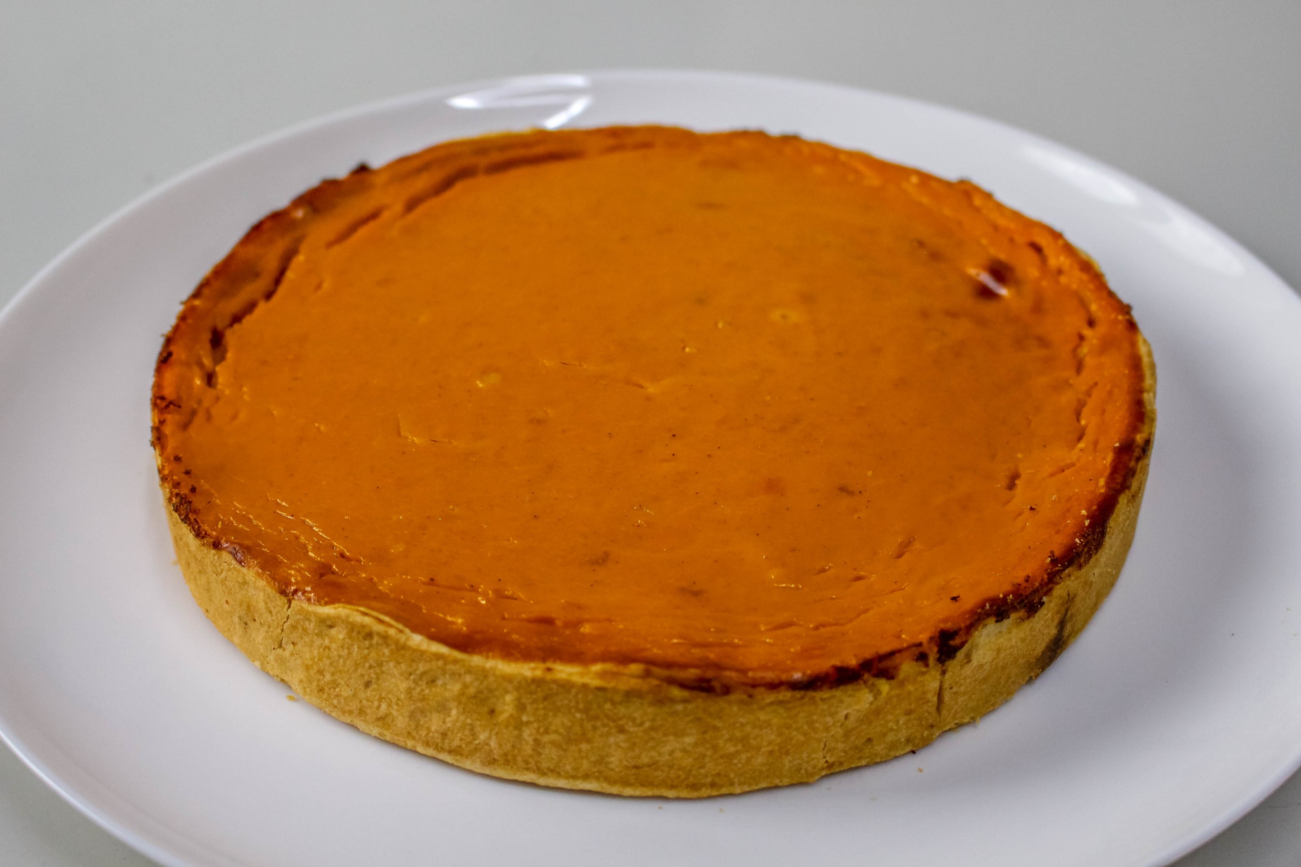 Песочная основа, начинка из тыквы, молока сгущенного, яйца куриного, крахмала, корицы