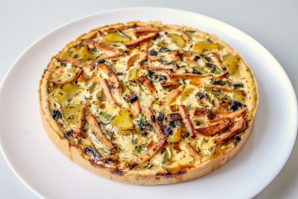 ФРАНЦУЗСКИЙ КИШ С ВЕТЧИНОЙ, КАРТОШКОЙ И ГРИБАМИ