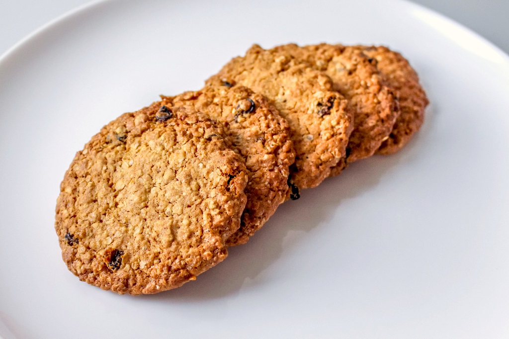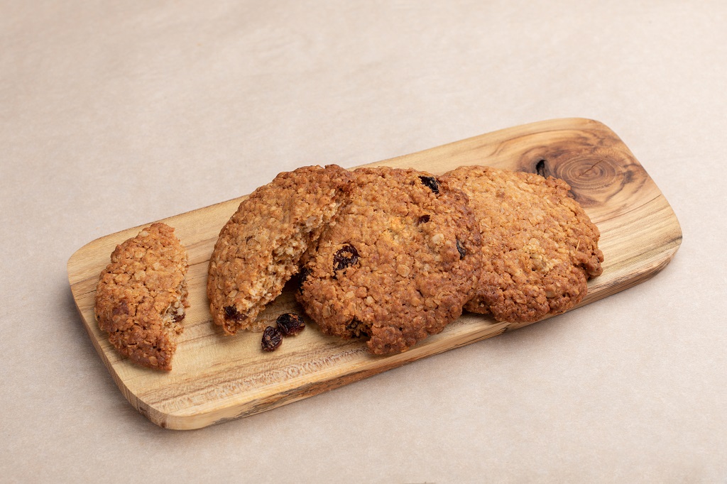 Мука пшеничная, хлопья овсяные, маргарин, мед сахарный, яйцо куриное, виноград сушеный