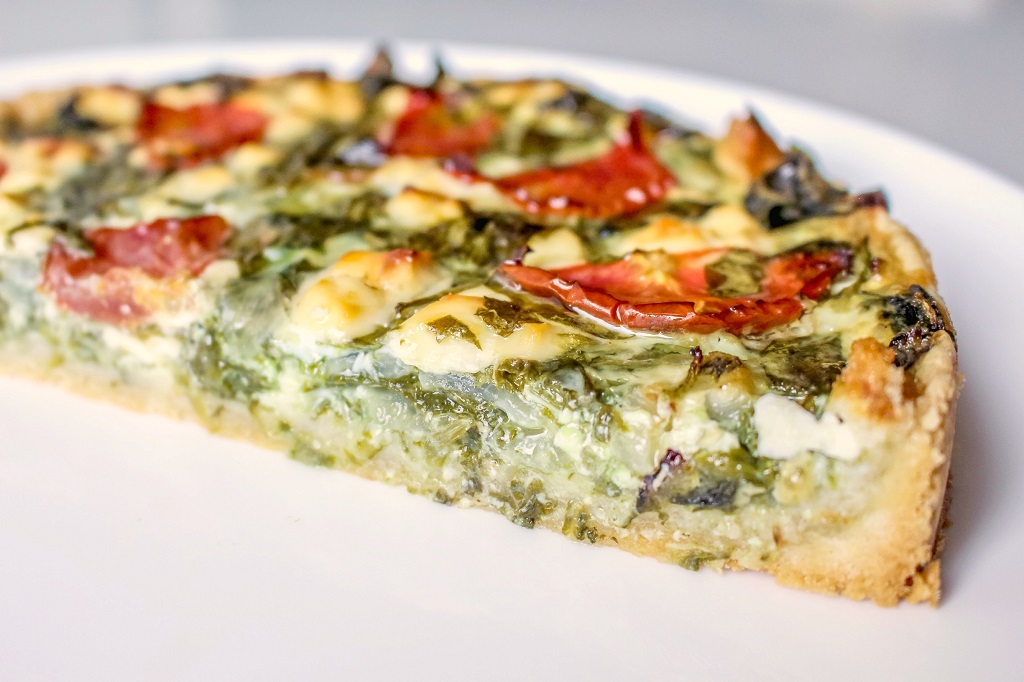 ФРАНЦУЗСКИЙ КИШ С ИНДЕЙКОЙ, ВЯЛЕННЫМИ ТОМАТАМИ И ШПИНАТОМ