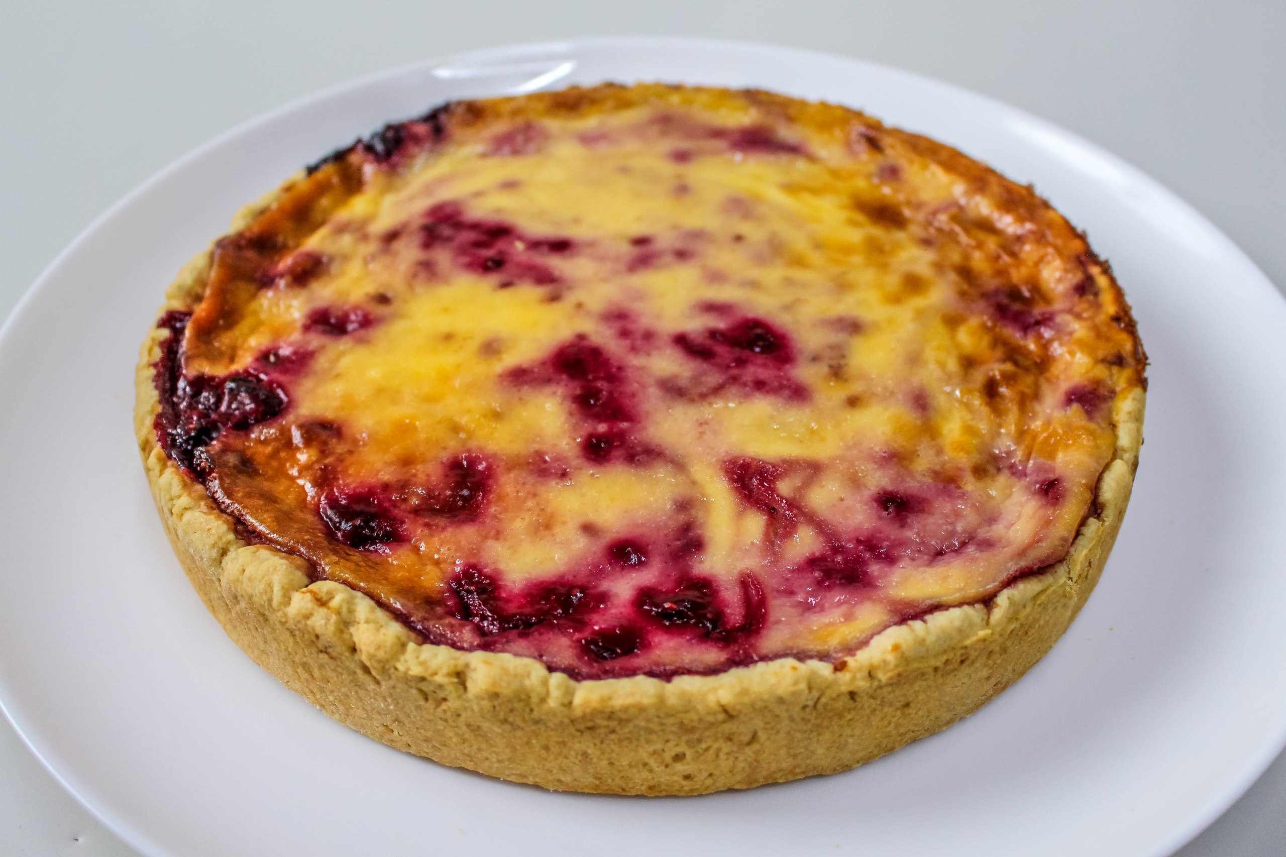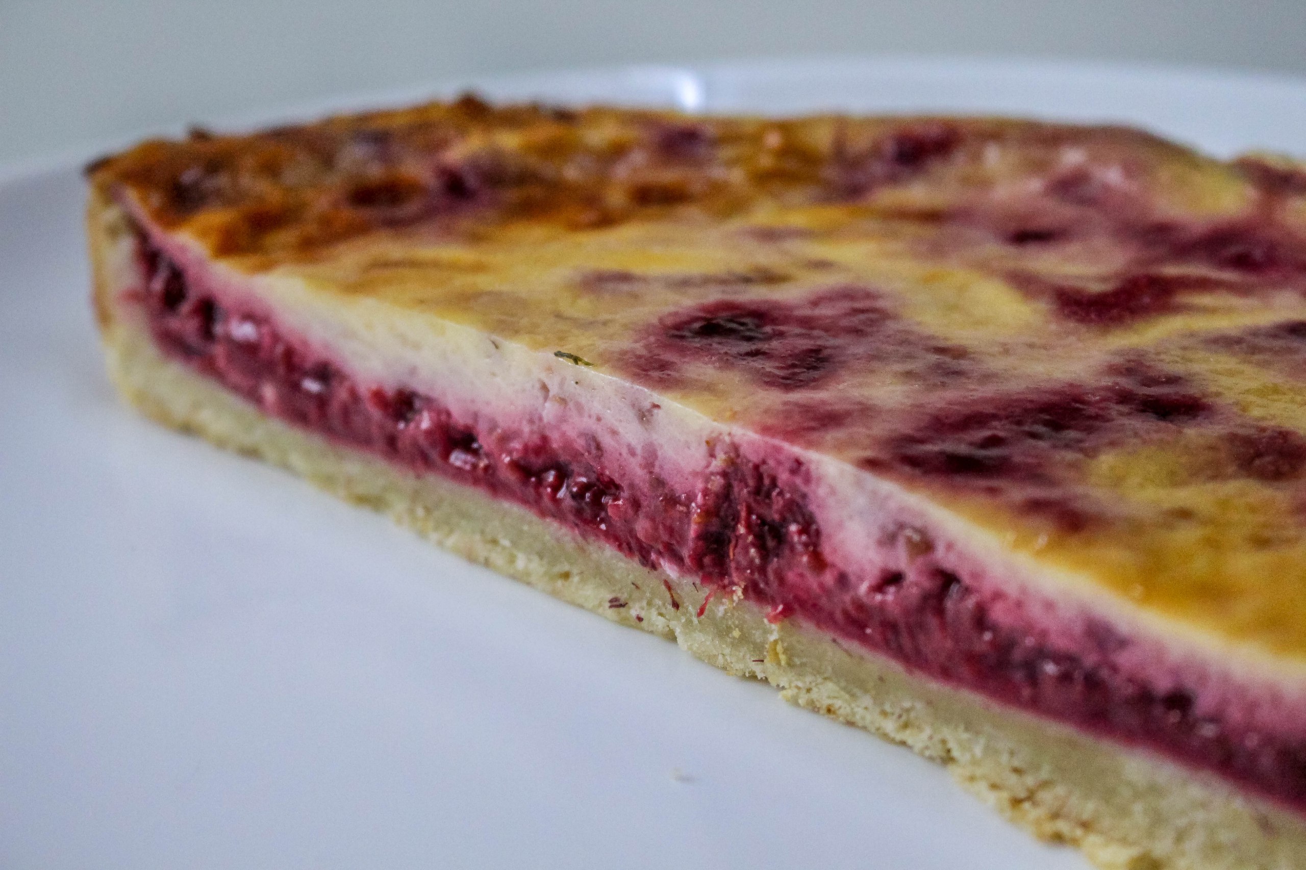 Песочное тесто, ягоды малины в сметанном соусе